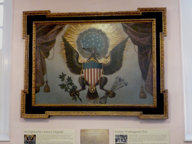 One of the oldest paintings of the Great Seal of the USA from 1781 over Washington's pew in Saint Paul's.